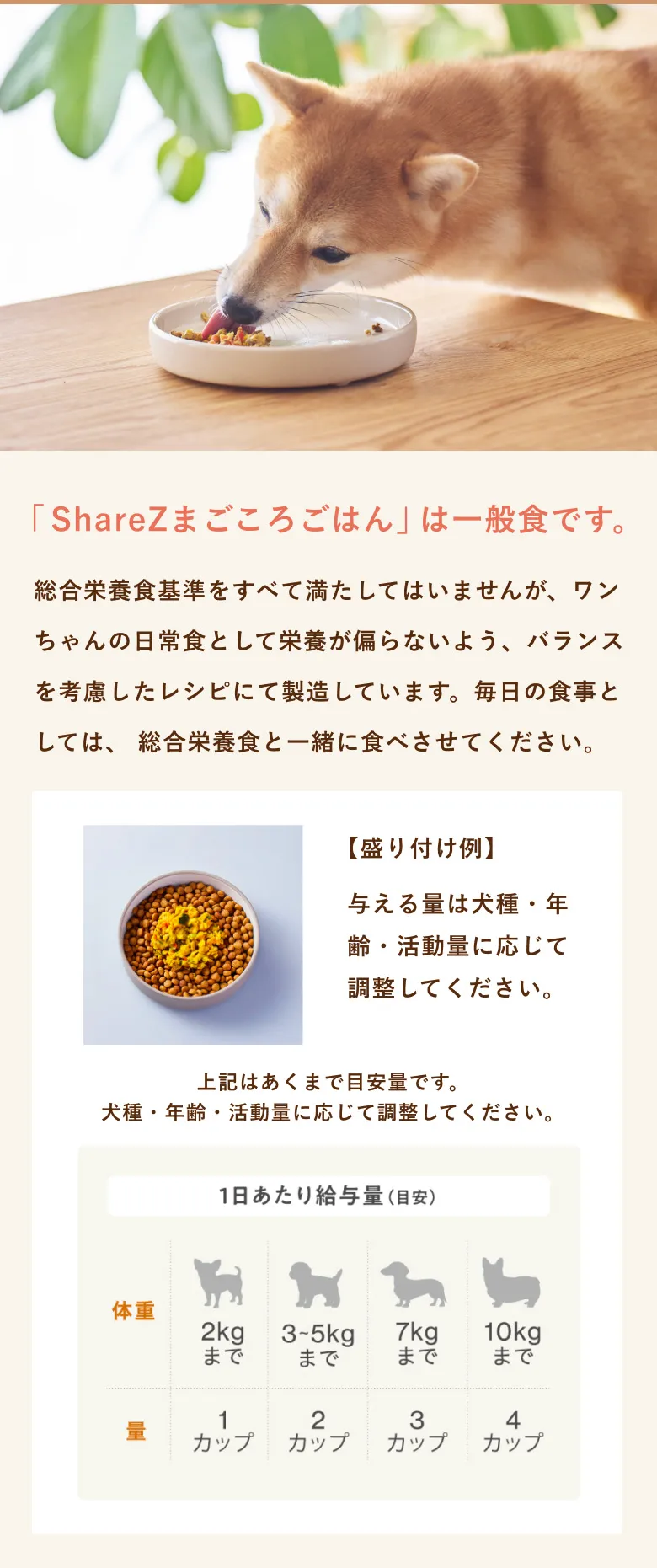 ShareZまごころごはんは、他の総合栄養食のフレッシュフードと違い、総合栄養食の基準を満たすためのサプリメントを使用していませんので、より素材の旨みが引き立ち、ワンちゃんたちの食いつきが違います。